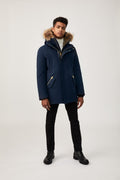 Edward by Mackage is a Nordic Tech sustainable down coat designed to help you face the coldest days of winter! Windproof, water-repellent and breathable, it features storm cuffs, a removable hooded bib, and a removable natural fur trim around the hood. Chest pockets with snap closures complete this deep winter essential.